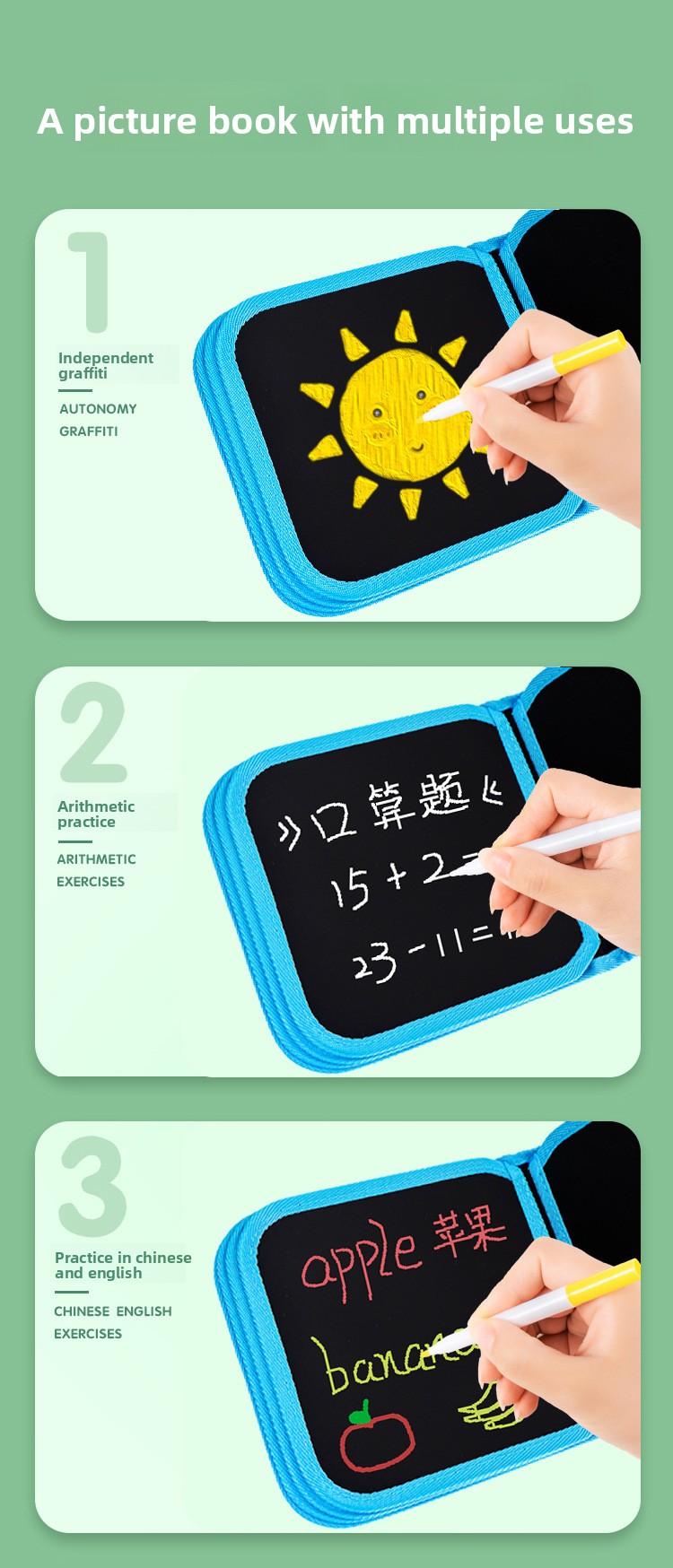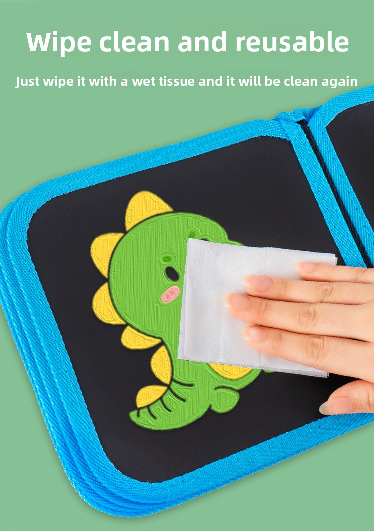 Simply draw, wipe clean, and start again! The smooth erasable pages work perfectly with water-based chalk pens for repeated creative fun.
